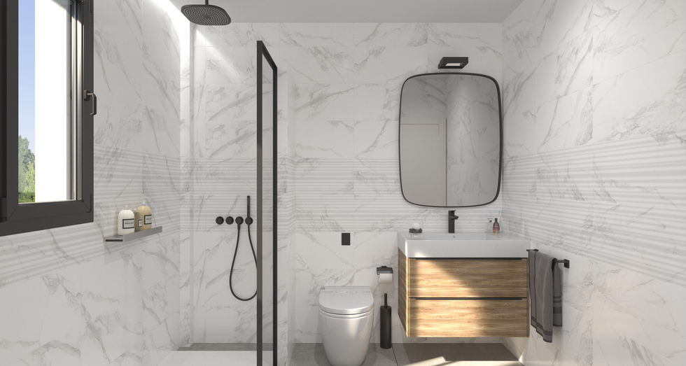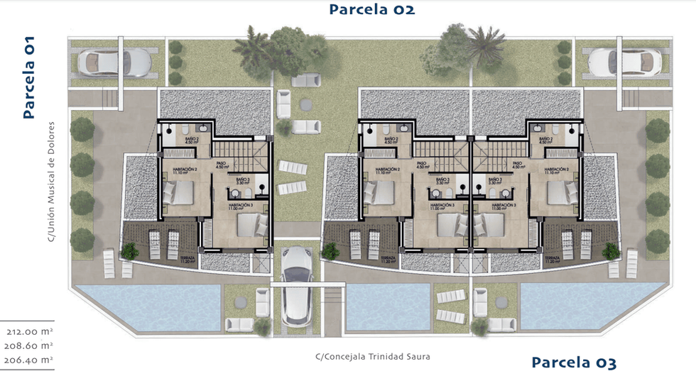 The first phase of the project includes three detached homes, each thoughtfully laid out across 133 m² of living space. These sun-filled residences feature three spacious bedrooms, each with its own fully equipped en-suite bathroom, as well as an additional guest toilet. Large windows and open-plan interiors create a seamless flow of natural light, enhancing the clean, modern lines and premium finishes found throughout each home.