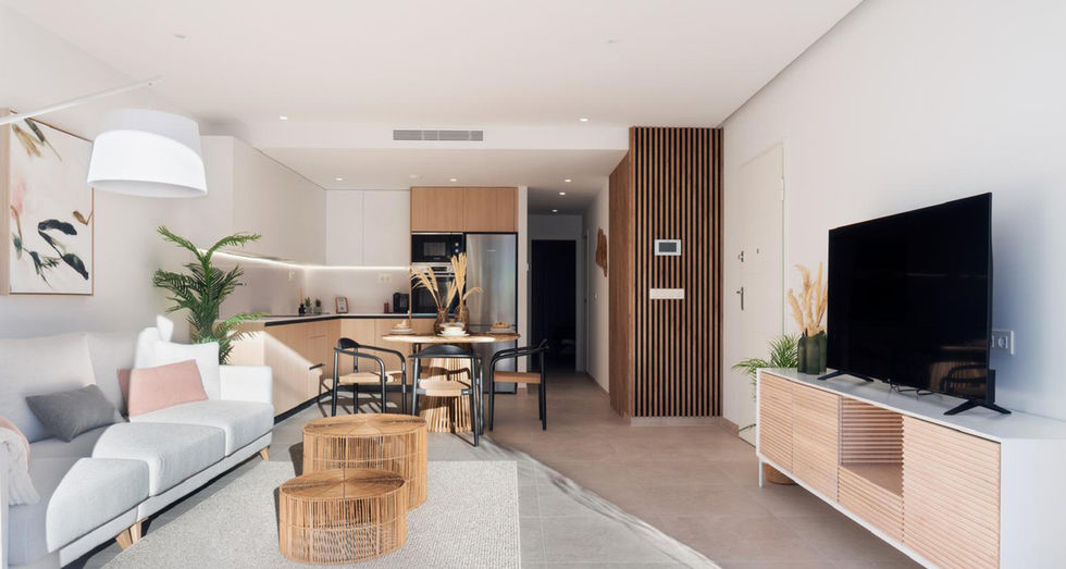 "EOLO Beach Bungalows, a fantastic new residential complex of 2-3 bedroom apartments in the vibrant coastal town of San Pedro del Pinatar, Murcia. The modern homes are perfectly located opposite a lush green park, offering serene views of the community. Choose a ground-floor home with a private garden or a top-floor apartment with an expansive rooftop solarium. This complex provides an ideal lifestyle with a communal pool and an exclusive private gym, all within a gated community. Just a short 3-minute walk to the sea and close to the Las Salinas Regional Park, this property is a perfect blend of sun, sea, and nature on the South Costa Blanca."