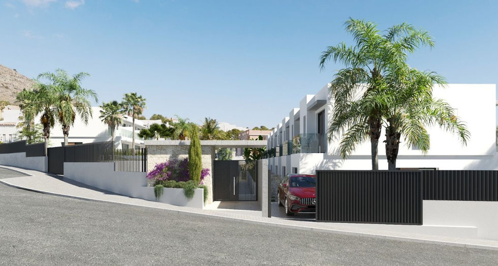 "You can have luxury and tranquility at "Seaview 6 Phase 1," a new build terraced villa development in the prestigious Sierra Cortina of Finestrat. These spacious 3-bedroom, 3-bathroom homes are designed for modern living, with a clever blend of materials and textures to create an elegant atmosphere. Enjoy stunning coastal views and the peace of a natural oasis, all while being just a 17-minute drive from the beach and the vibrant city of Benidorm. The development features a communal swimming pool and playground, with each villa including a private garden and private parking, making it a perfect family home or holiday retreat."