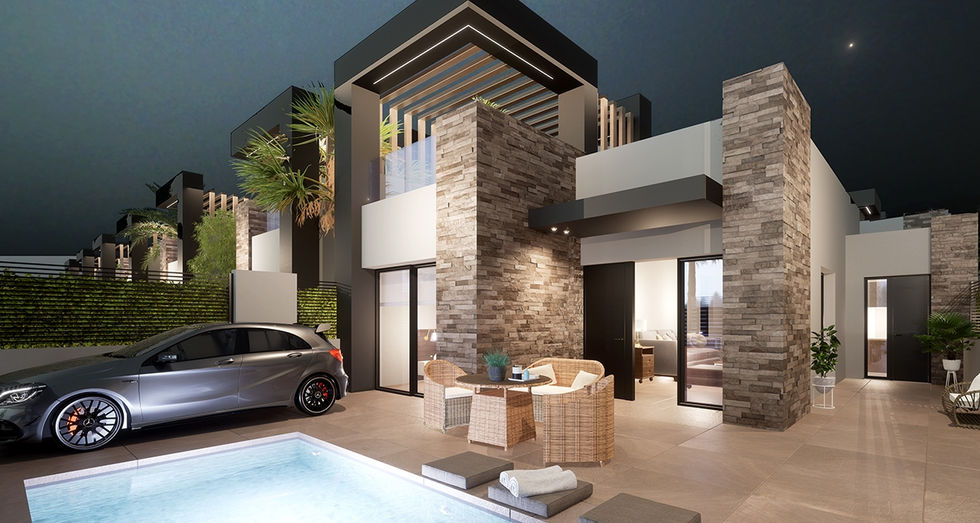 "Villas Saito" is an ample 3-bedroom "new build detached villa" in San Fulgencio, a town near Guardamar del Segura. This spacious "single-level design" property features a high-ceilinged living area for a sense of light and space. A key feature is the private pool and a rooftop solarium, crowned with a stylish pergola, perfect for summer evenings. With amenities within walking distance and the beautiful beaches of Guardamar del Segura just a short drive away, this home is ideal for a convenient "Mediterranean lifestyle."