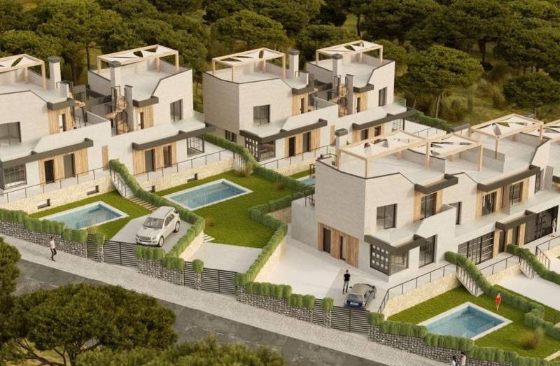 "WOW Nature Resort" is a new residential complex of "detached villas" in Polop, offering spacious 3-bedroom homes over two floors. This "new build home in Polop" is meticulously designed for comfort and quality of life, with a two-story layout and large windows that connect the living spaces to the surrounding natural landscape. The private plots offer generous garden areas, and residents can enjoy mountain views all year round. The resort is just a short drive from the beaches of Benidorm and Albir."